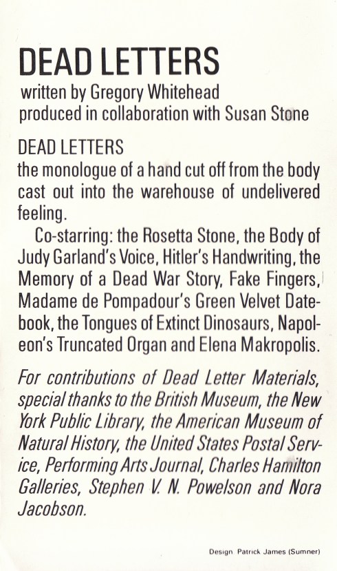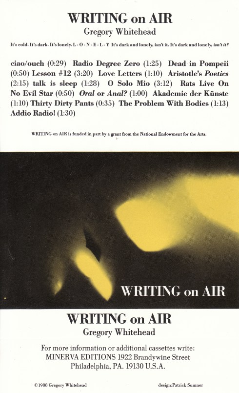 A conversation between a Host and a conjured revolutionary cyclotherapist Guest. Broadcast on the BBC as part of the late-night series TALK TO SLEEP, commissioned by John Dryden/Goldhawk in 1999: an exploration of the ubiquitous radio interview format, yet with GW playing host, guests and all band instruments…..