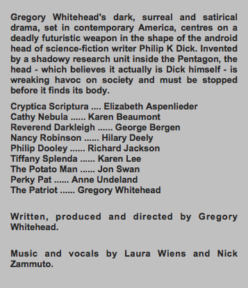Gregory Whitehead (writer, director, montage/composition, vocals)