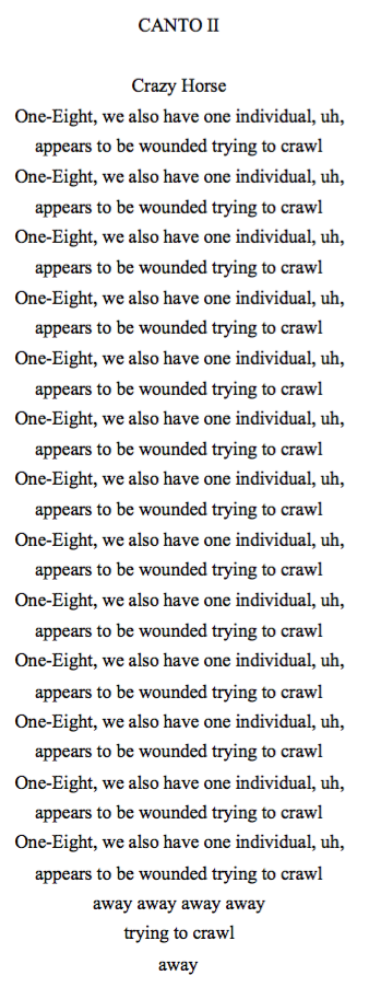 At the heart of this broadcast: one day in the no-touch torture of detainee 063, as expressed through my verbatim voicing. Other texts float through and around the log, voiced by Anne Undeland: lists of the approved techniques, brief histories in the development of no-touch torture, excerpts from an interview with Dick Cheney, and analysis of what is happening within the interrogation log itself, ten years after it first came to light.